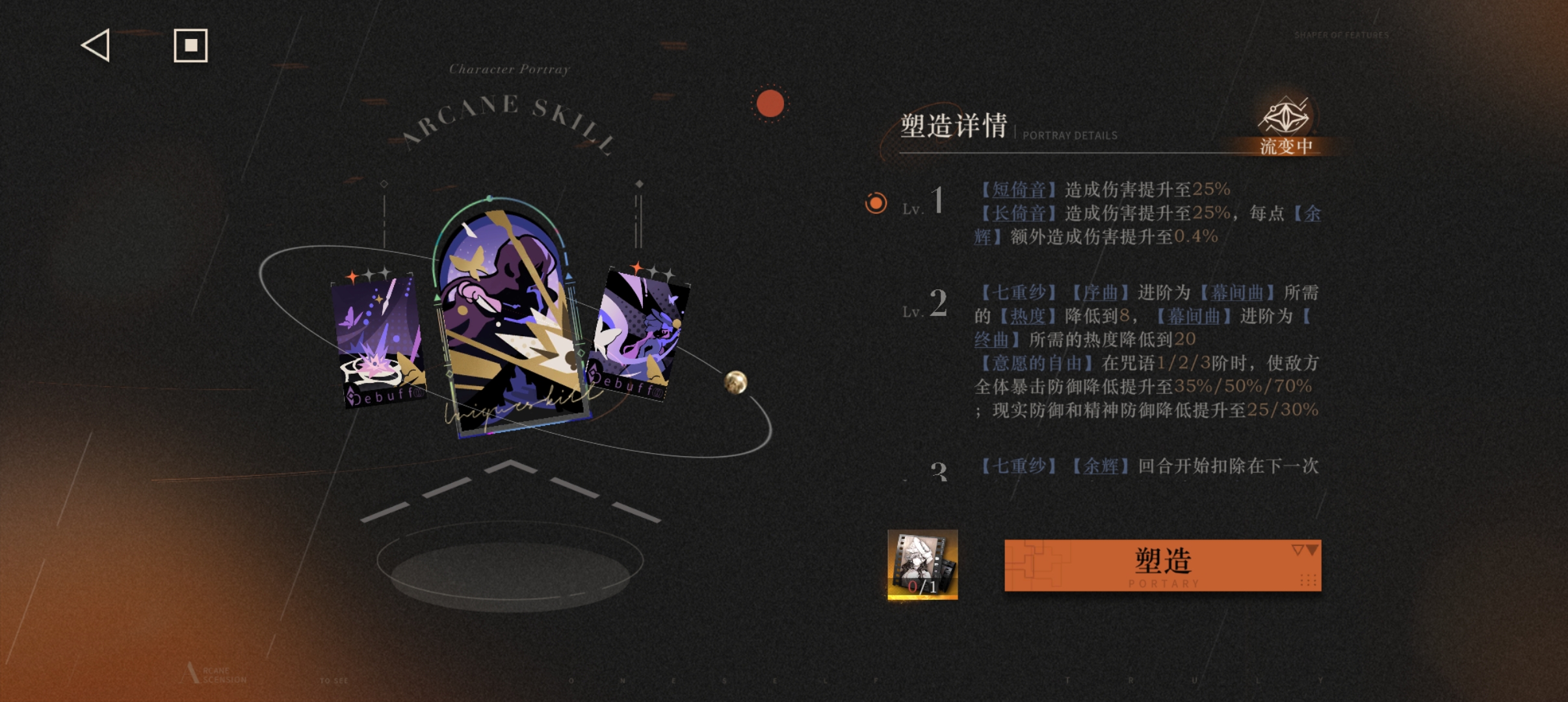狂想伊索尔德的零塑机制非常完整,关键塑造为2/3塑。