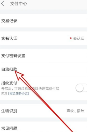 3、进入【设置】界面后,向下找到【自动扣款】选项;