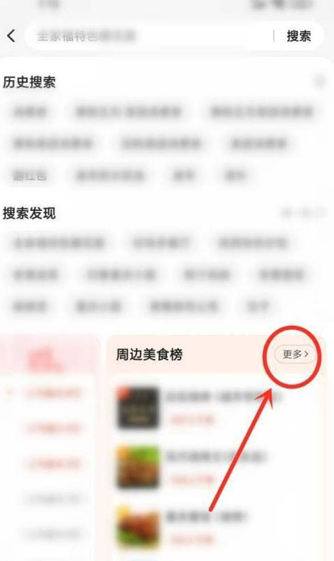3、随后进入搜索页面,找到并点击“周边美食榜”。