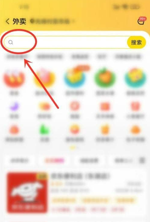 2、进入美团外卖首页后,点击页面上方的搜索框栏目进行操作。