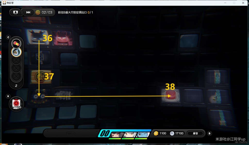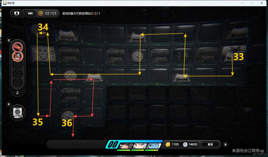 (10)接着沿黄色路线走33-34-35区域,再沿红色路线35-36区域,这样怪物就无法追上我们。