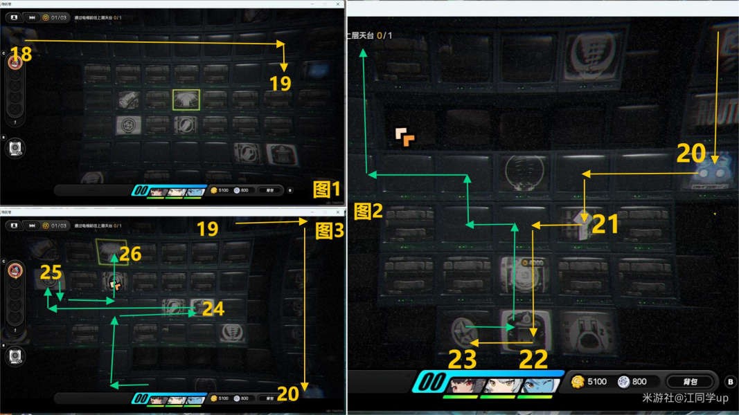 (6)到达19区域后按R键进入夜视模式,击败下方20区域的蓝色怪物,然后在20区域退出夜视模式返回19区域,接着前往下方21区域,再依次前往22和23区域,之后上到24和25区域,最后去26区域击败怪物并进行传送。