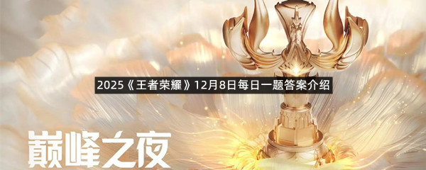 前天的推文提到2025年王者荣耀KPL最受欢迎奖项颁奖仪式将在“2025年度王者荣耀______之夜”进行(两个字),这是今天《王者荣耀》2025年12月8日的每日一题问题,相信很多玩家不是很清楚今天的问题答案是什么,这里羊托游小编为你带来了2025《王者荣耀》12月8日每日一题答案介绍的全部内容,感兴趣的小伙伴欢迎点击进入看看吧。