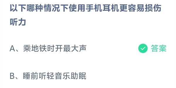 A:乘地铁时开最大声、B:睡前听轻音乐助眠
