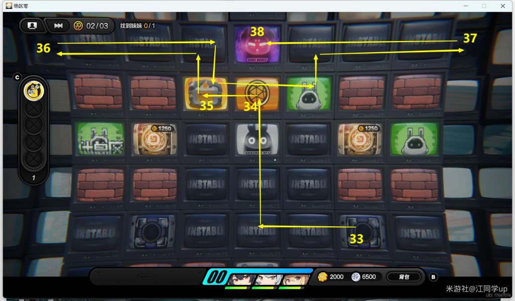 (13)进入30号区域后,一直下行至最底层的31号区域,然后从31号区域前往最右侧,再从最右侧向上到32号区域,随后通过33号区域开门离开。这一步可以选择跳过,做的原因是31号右侧区域充满了【丁尼】(货币)。