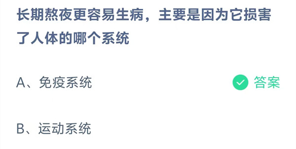 长期熬夜更容易生病,主要是因为它损害了人体的哪个系统