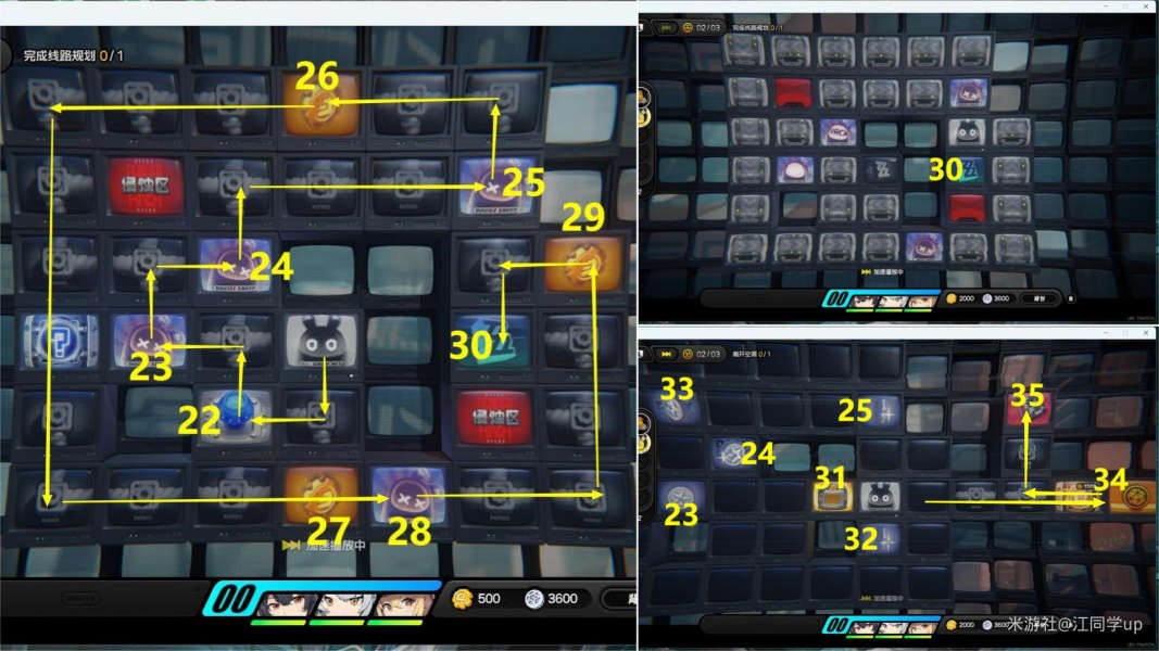 (6)随后按下图顺序依次探索22至30区域,再去领取23至25区域和31至34区域的奖励,最后到35区域击败BOSS,该【剧情委托】任务结束。全程按照攻略路线执行的话,还能顺利解锁隐藏成就《杯水不洒》。