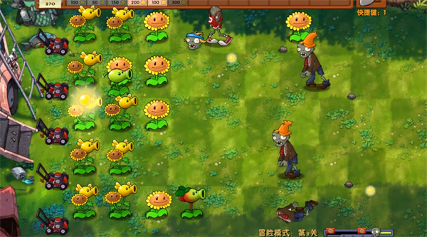 5、随着关卡进度推进,不断增加向日葵和豌豆的产量,保证资源充足。