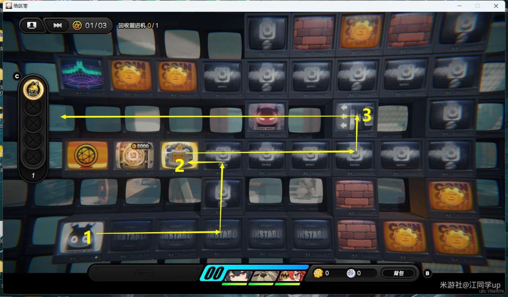(2)随后前往2区域,再去3区域,进入3区域后会被弹到左边的4区域。