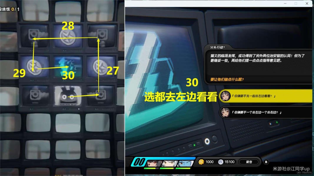 (6)随后依次前往27至29区域,到达30区域时选择第一个对话选项【你俩要不先一起去左边看看?】。