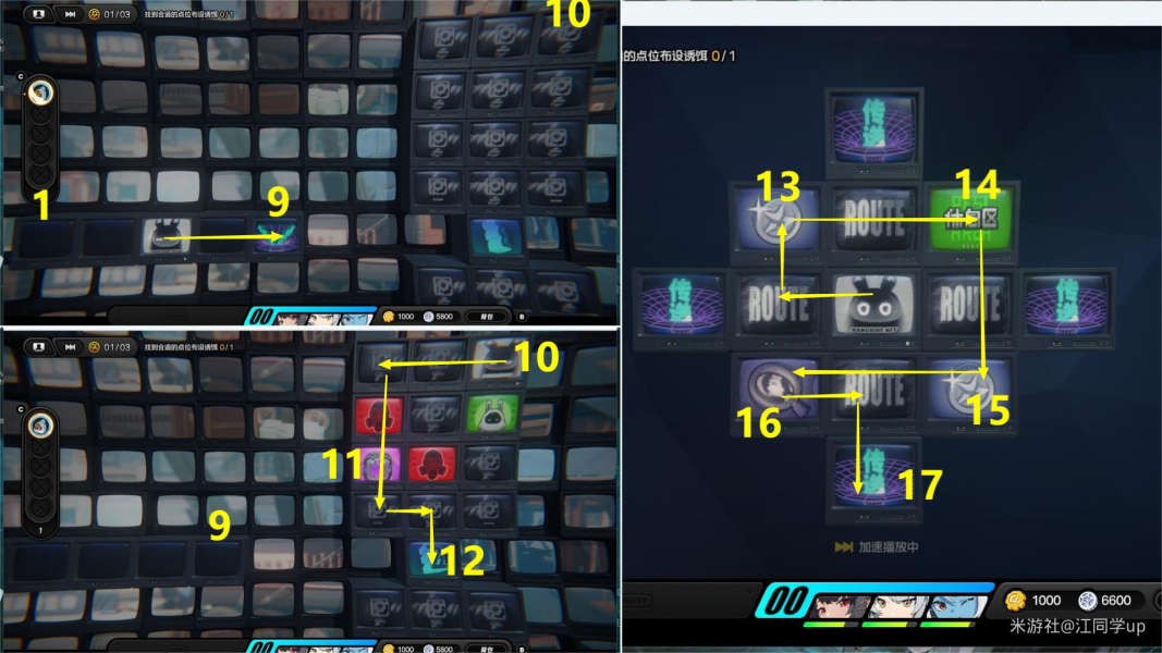 (3)随后前往9区域再传送到10区域,先去11区域完成操作,再传送至12区域,接着依次探索13至16区域,最后到17区域进行传送。