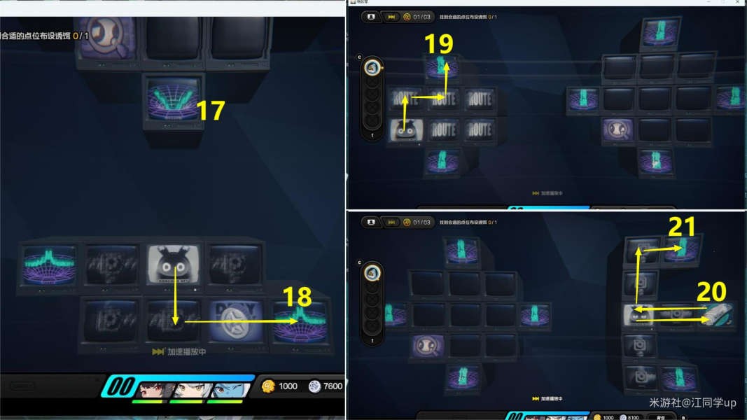 (4)接着继续前往18区域进行传送,再去19区域传送,然后先到20区域,最后前往21区域完成传送。