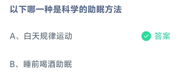 A:白天规律运动、B:睡前喝酒助眠