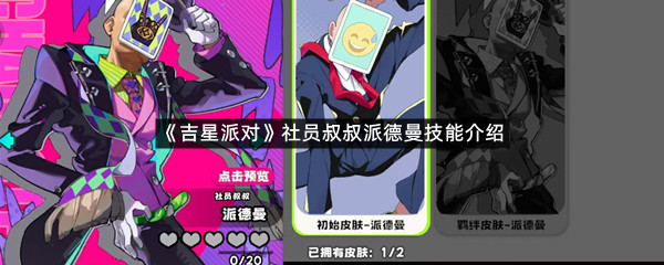 《吉星派对》作为一款深受我们国内玩家喜爱的派对游戏,要想玩好这款游戏,最重要的当然就是要培养角色了,在我们抽到了社员叔叔派德曼之后,很多玩家还不是很清楚这个角色的技能机制是什么,这里羊托游小编为你带来了《吉星派对》社员叔叔派德曼技能介绍的全部内容,感兴趣的小伙伴欢迎点击进入看看吧。