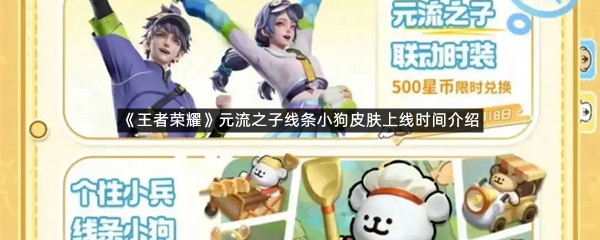 《王者荣耀》在S42赛季开启的时候,会开启很多有趣的活动内容,在新赛季中,推出了全新的小狗线条的联动活动,此次还有一款联动皮肤是通过500星币来兑换的,给到了元流之子,同时我们还可以通过一颗荣耀水晶来兑换线条小狗的个性小兵装扮,那么这皮肤什么时候上线呢?这里羊托游小编为你带来了《王者荣耀》元流之子线条小狗皮肤上线时间介绍的全部内容,感兴趣的小伙伴欢迎点击进入看看吧。