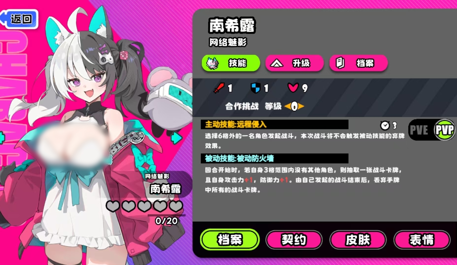 在PVP形式的标准模式中,南希露的主动技则调整为只能对六格外的角色发动战斗,被动技的抽牌机制保持不变,但属性加成降为攻击力+1、防御力+1。
