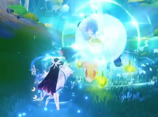 哥伦比娅可以战技后台挂水的同时,可以触发全新的月结晶的反应。
