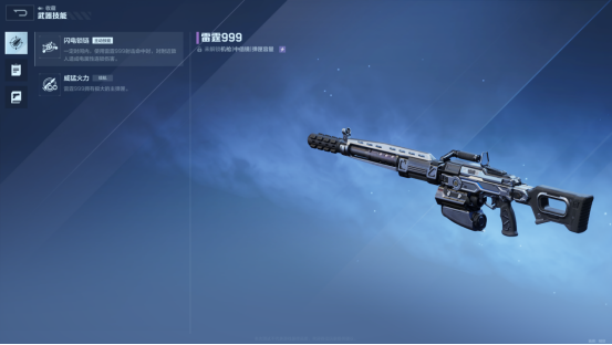 效果:在一定时间内,使用雷霆999射击命中时,会对周围敌人造成电属性连锁伤害。