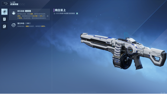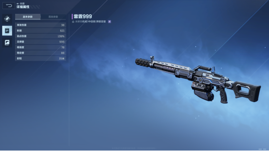 纯白至上的属性面板除了换弹时间稍长外,其它表现都很不错。可以通过搭配插件来减少换弹影响。不过开箱概率没有雷霆999高,因此排在第二。