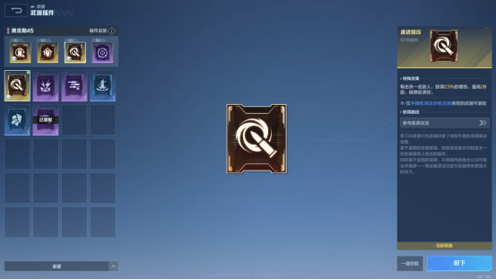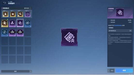 可选择增加弹药扩容的插件,等中期获得高等级金色插件后可替换。