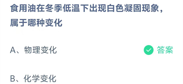 食用油在冬季低温下出现白色凝固现象,属于哪种变化