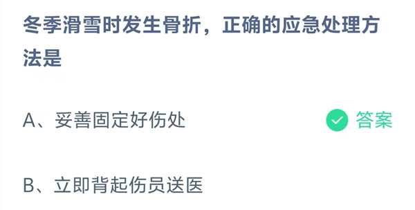 冬季滑雪时发生骨折,正确的应急处理方法是?这是今天《支付宝》每日一题的问题,相信我们很多用户都很想知道这个问题的答案是什么?这么一个可以领取饲料的机会相信我们很多用户都不想错过,这里羊托游小编为你带来了2026《支付宝》1月16日每日一题最新答案介绍(2)的全部内容,喜欢的小伙伴欢迎点击进入看看吧。