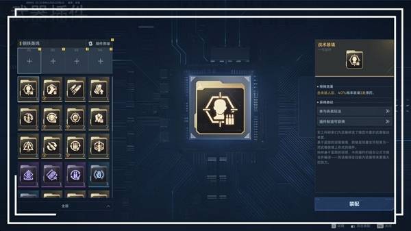 武器插件:可以为武器叠加额外伤害属性,总共有四个插件槽位,每个插件提供不同方向的效果,搭配不同插件会影响武器整体性能。