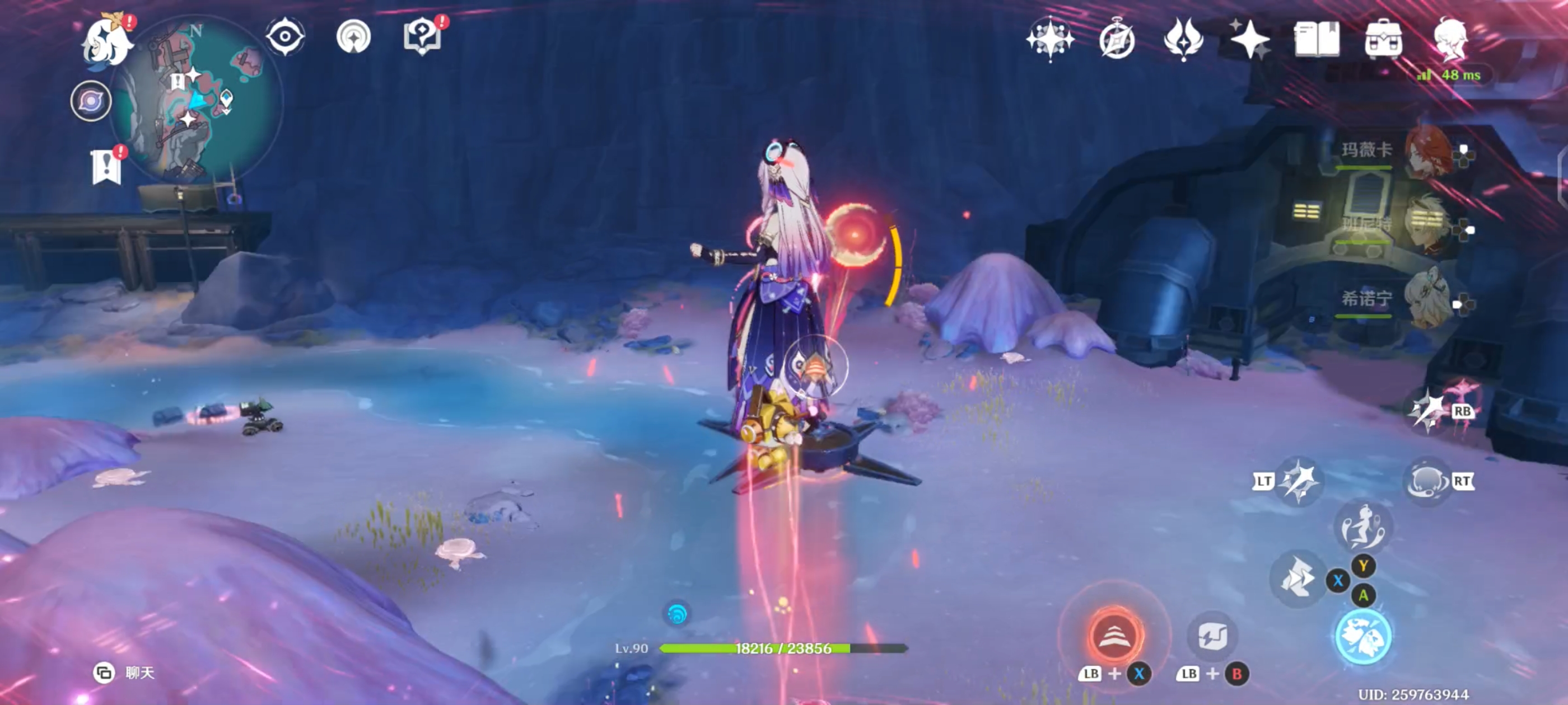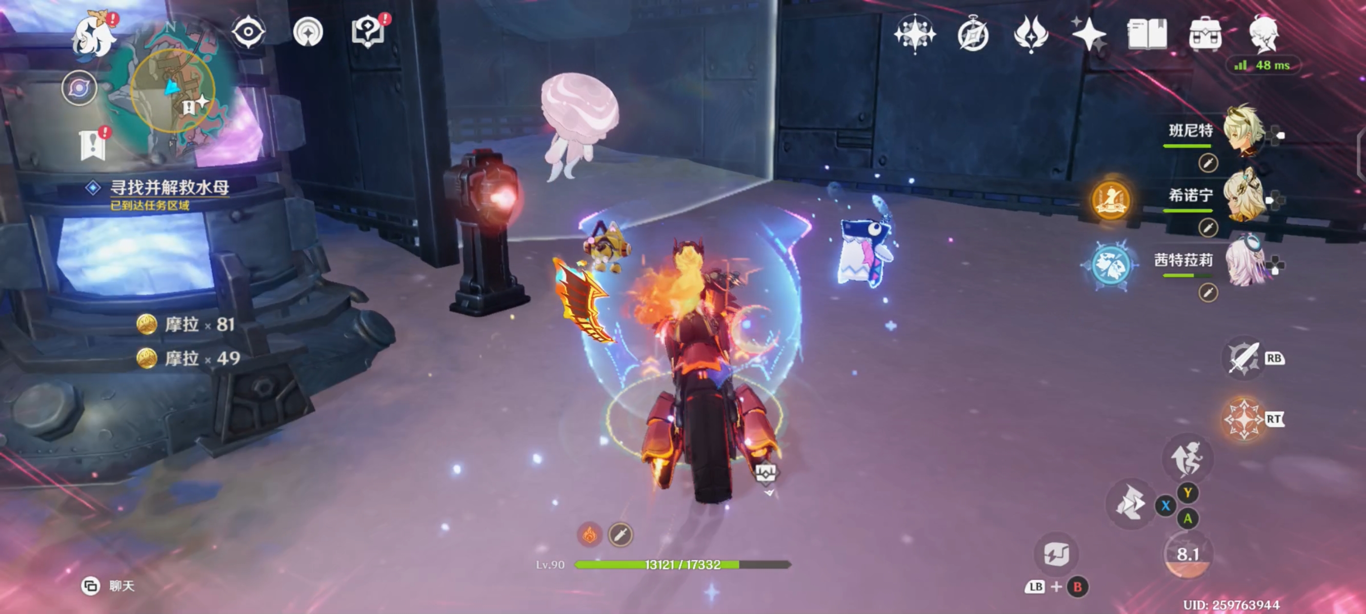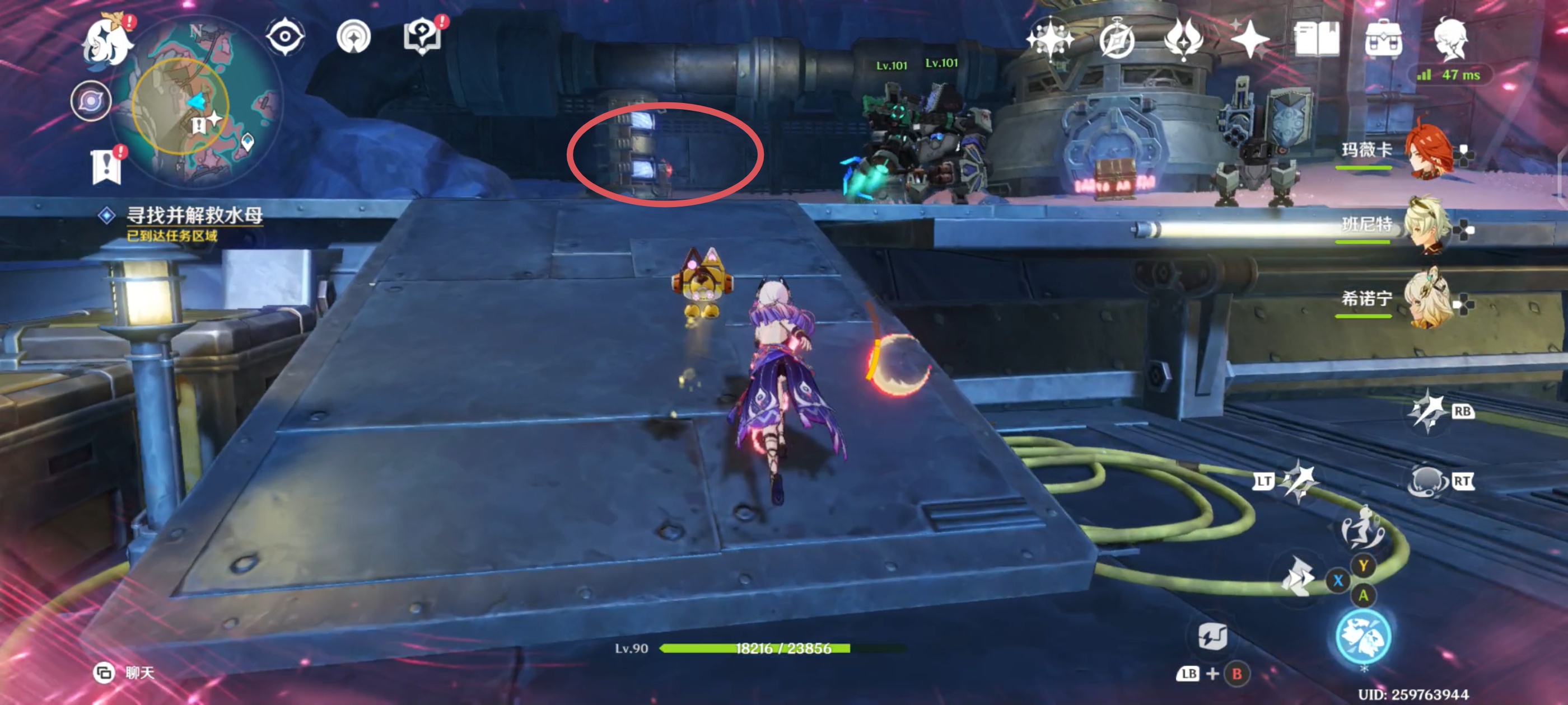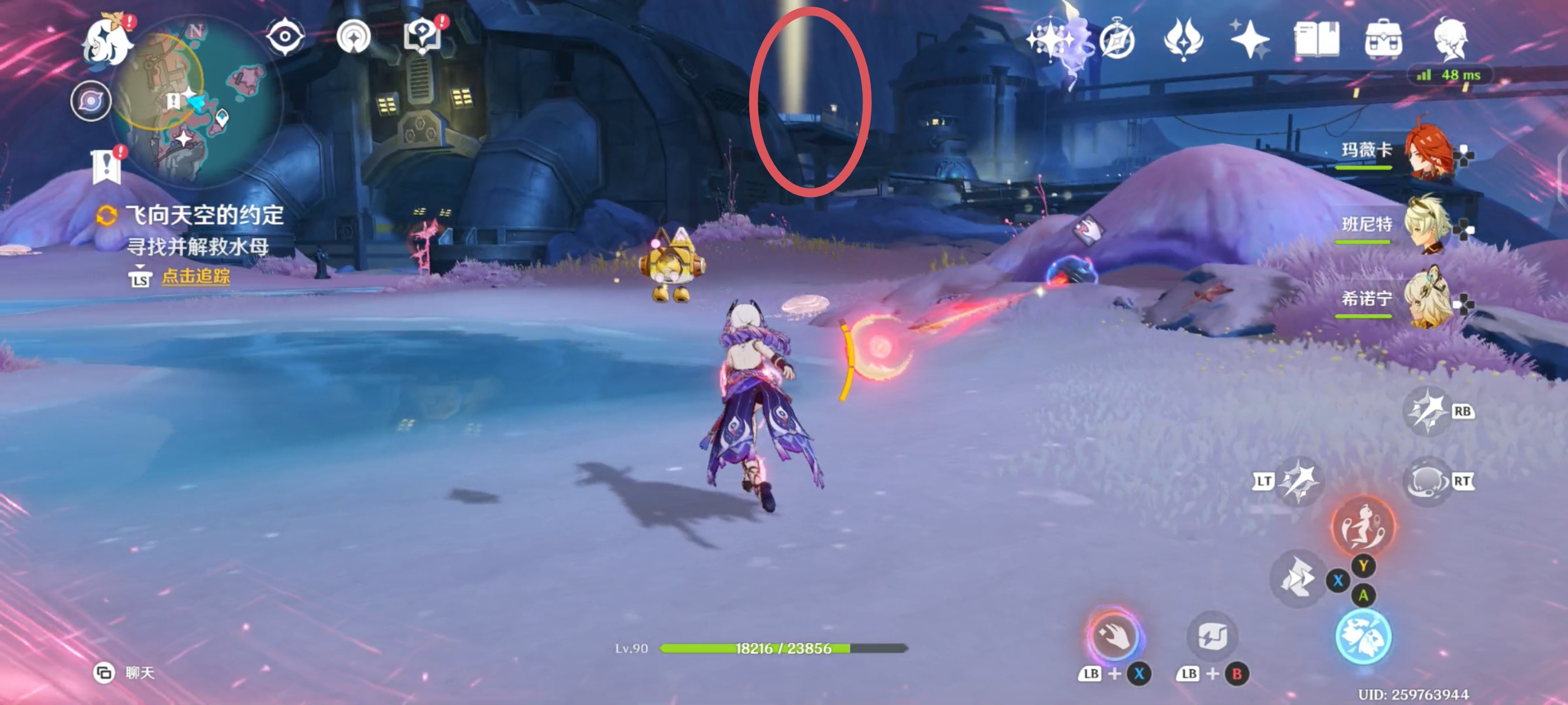 解救水母后,利用附近的月矩力飞到空中,破坏机关后进入对话;
