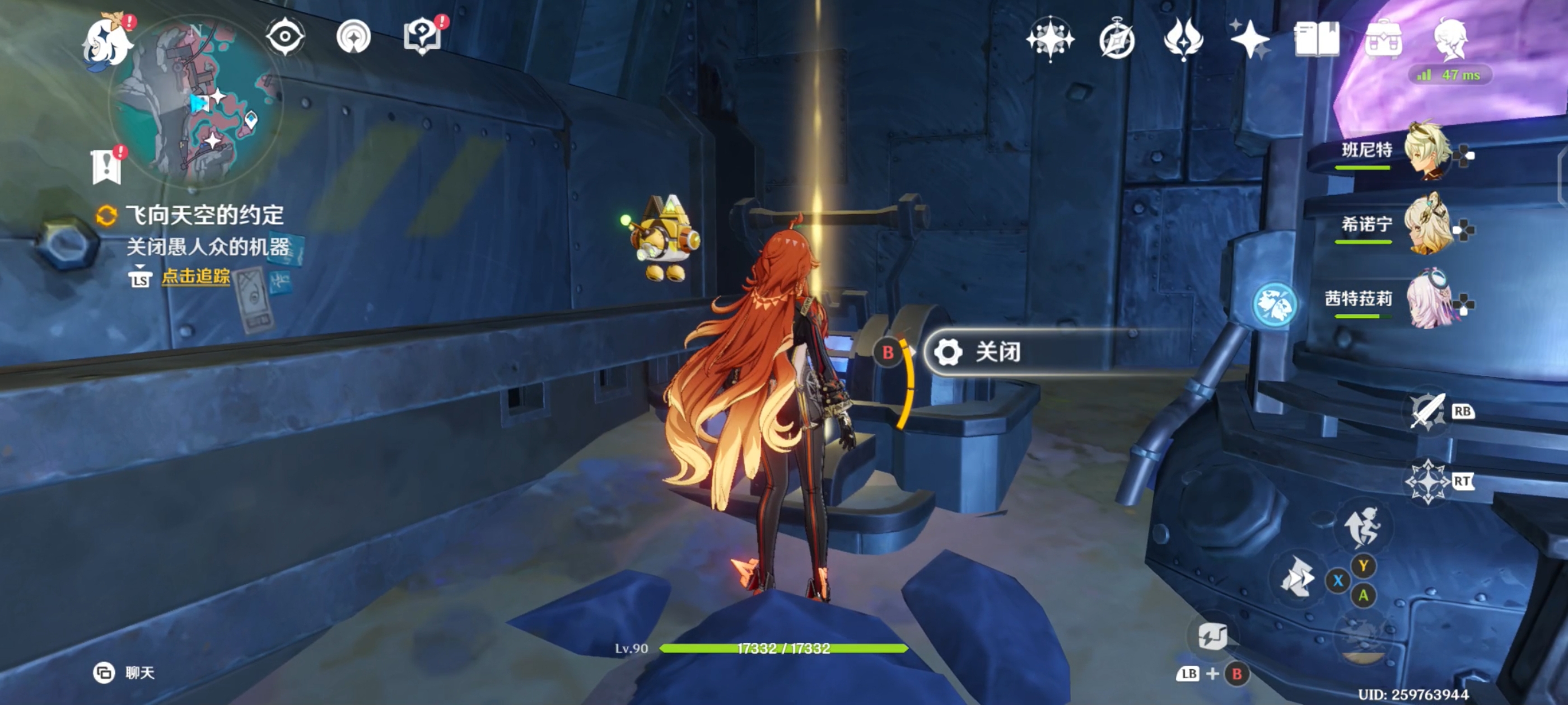对话结束后,与旁边的机关进行交互,将其关闭;