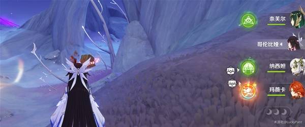 在此处吸取附近獭懒羊身上的种核后,指引其对月凝壁障发起冲击,使壁障融解,从而解锁奇馈宝箱