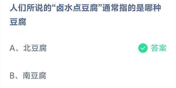 人们所说的“卤水点豆腐”通常指的是哪种豆腐?这是今天《支付宝》每日一题的问题,相信我们很多用户都很想知道这个问题的答案是什么?这么一个可以领取饲料的机会相信我们很多用户都不想错过,这里羊托游小编为你带来了2026《支付宝》1月18日每日一题最新答案介绍(1)的全部内容,喜欢的小伙伴欢迎点击进入看看吧。