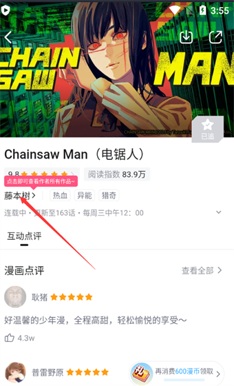 4、进入漫画详情页后,点击该漫画的【作者名字】。