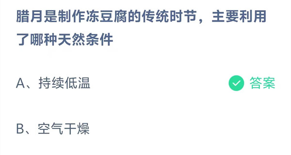 腊月是制作冻豆腐的传统时节,主要利用了哪种天然条件