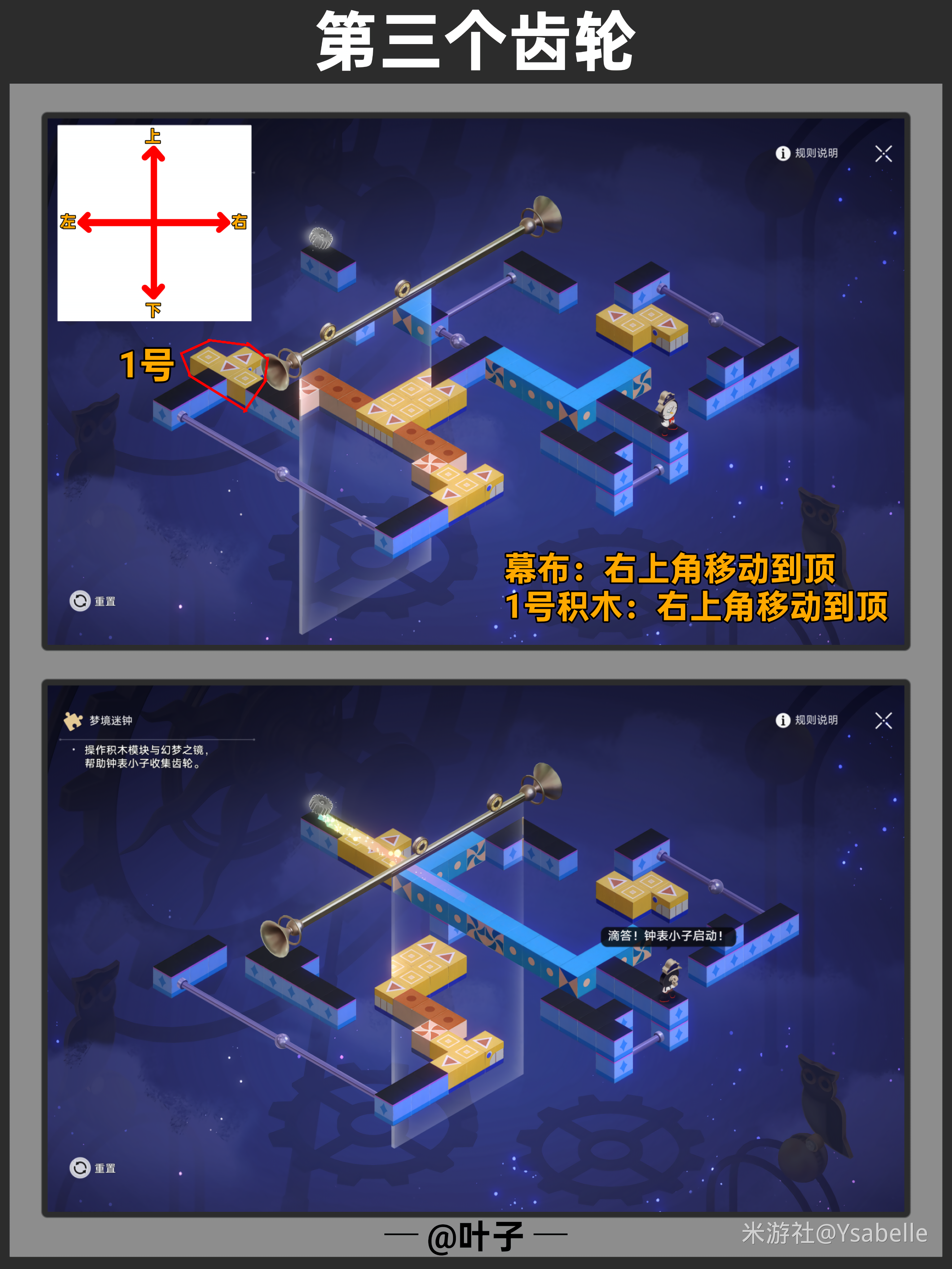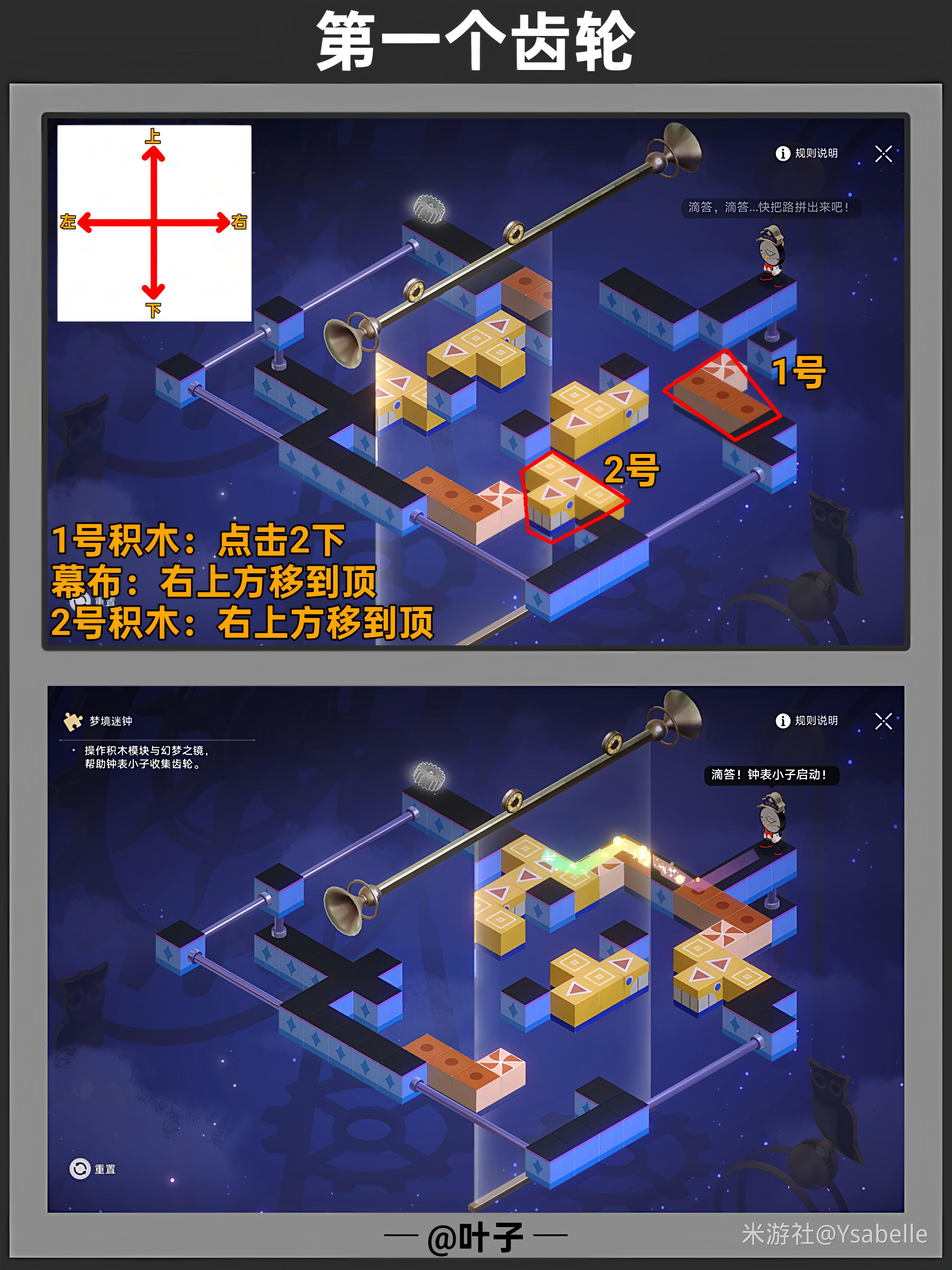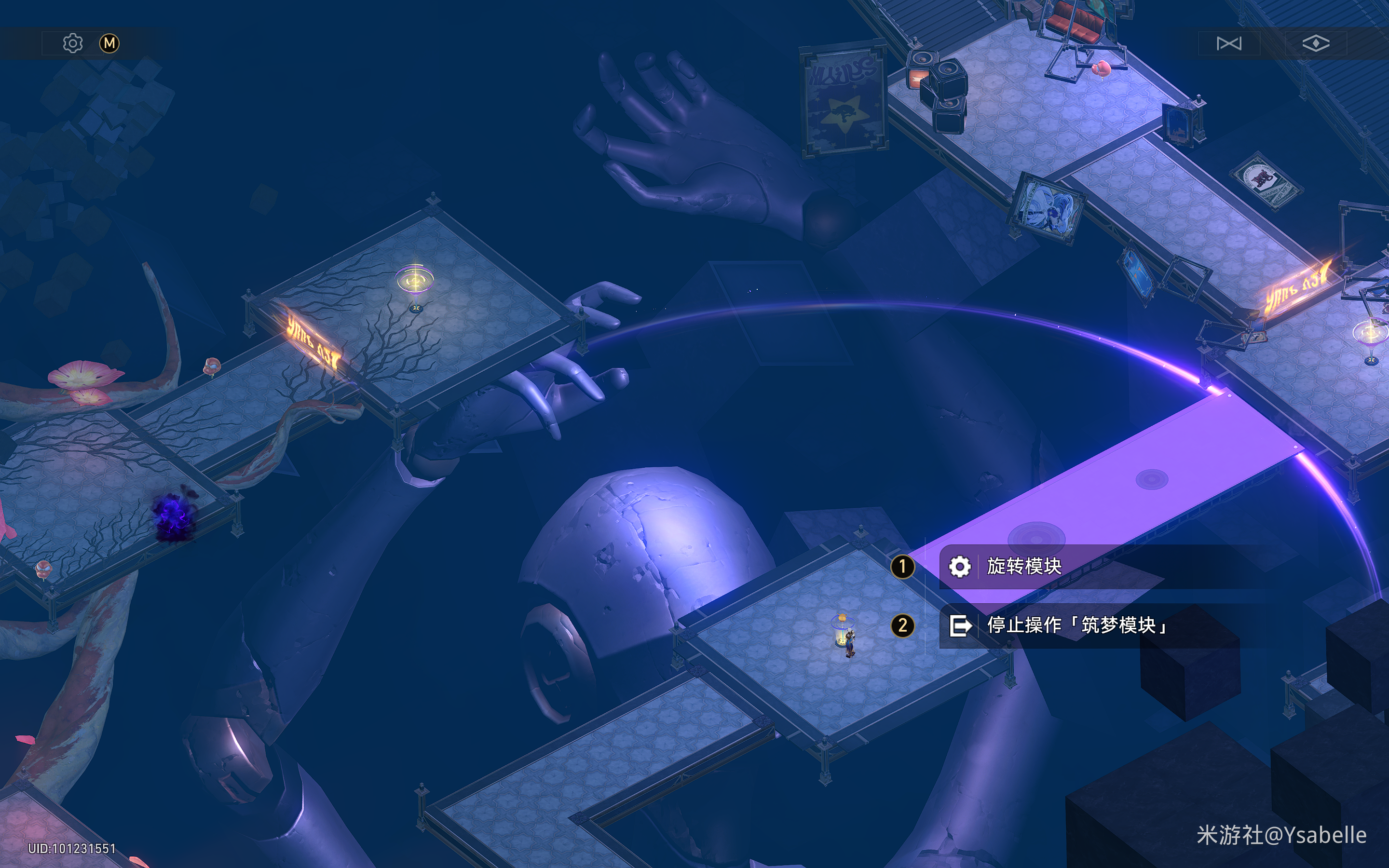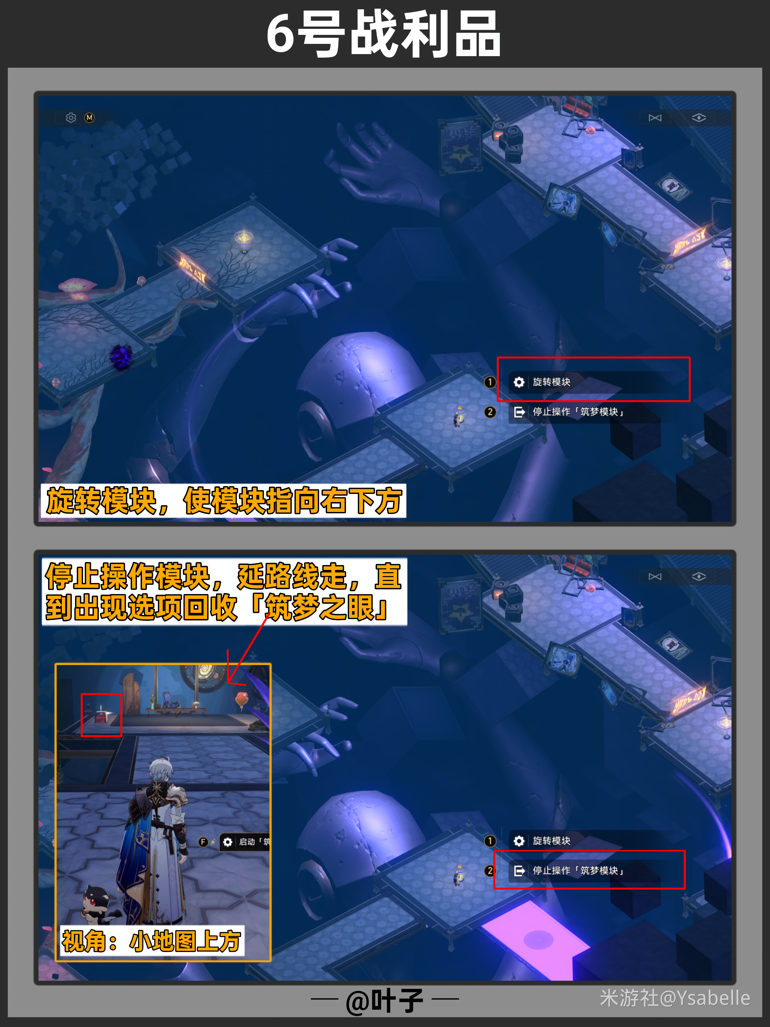 点击三次「旋转模块」,使模块指向右上角,然后停止操作,沿路前进回收【筑梦之眼】