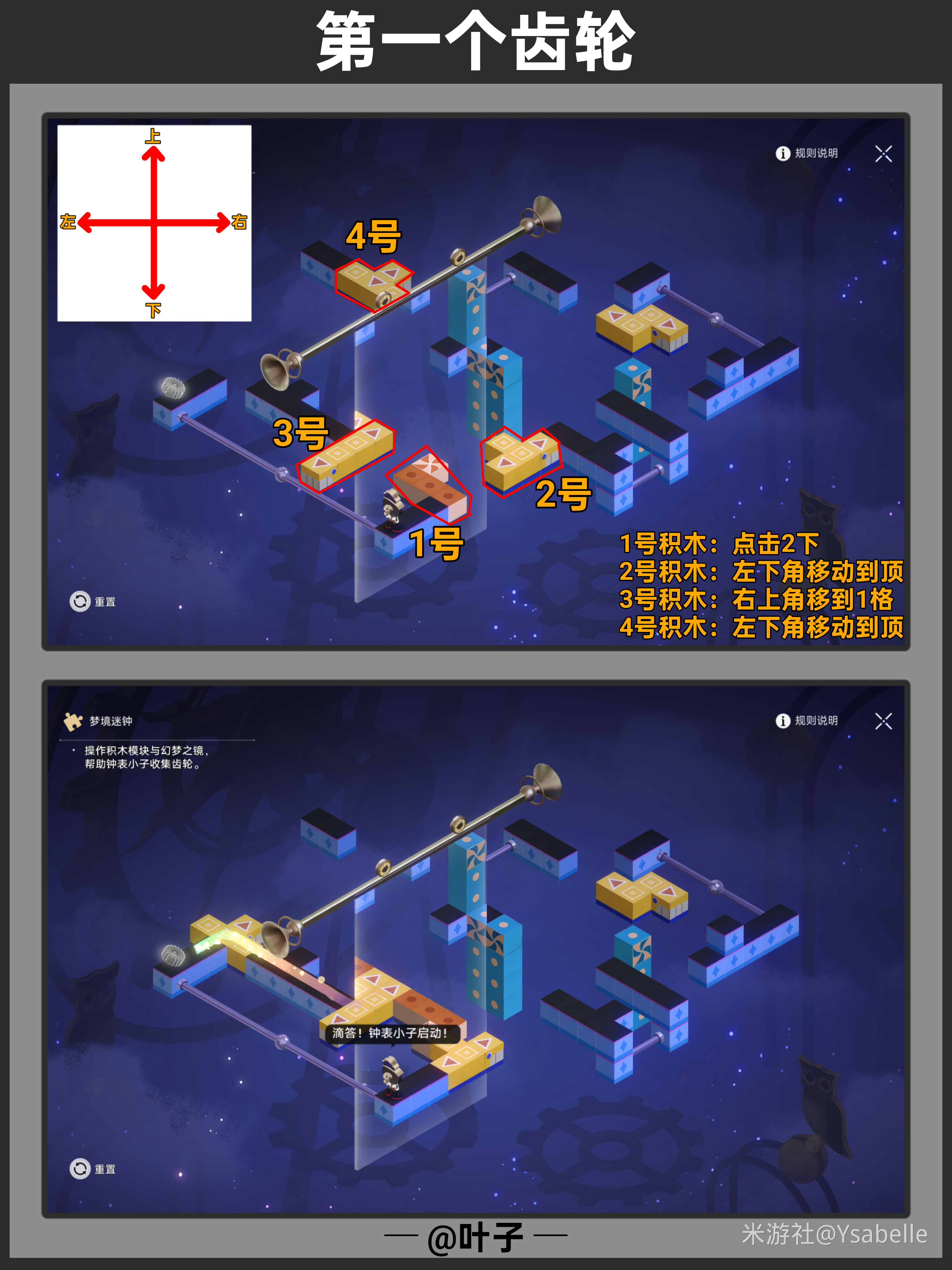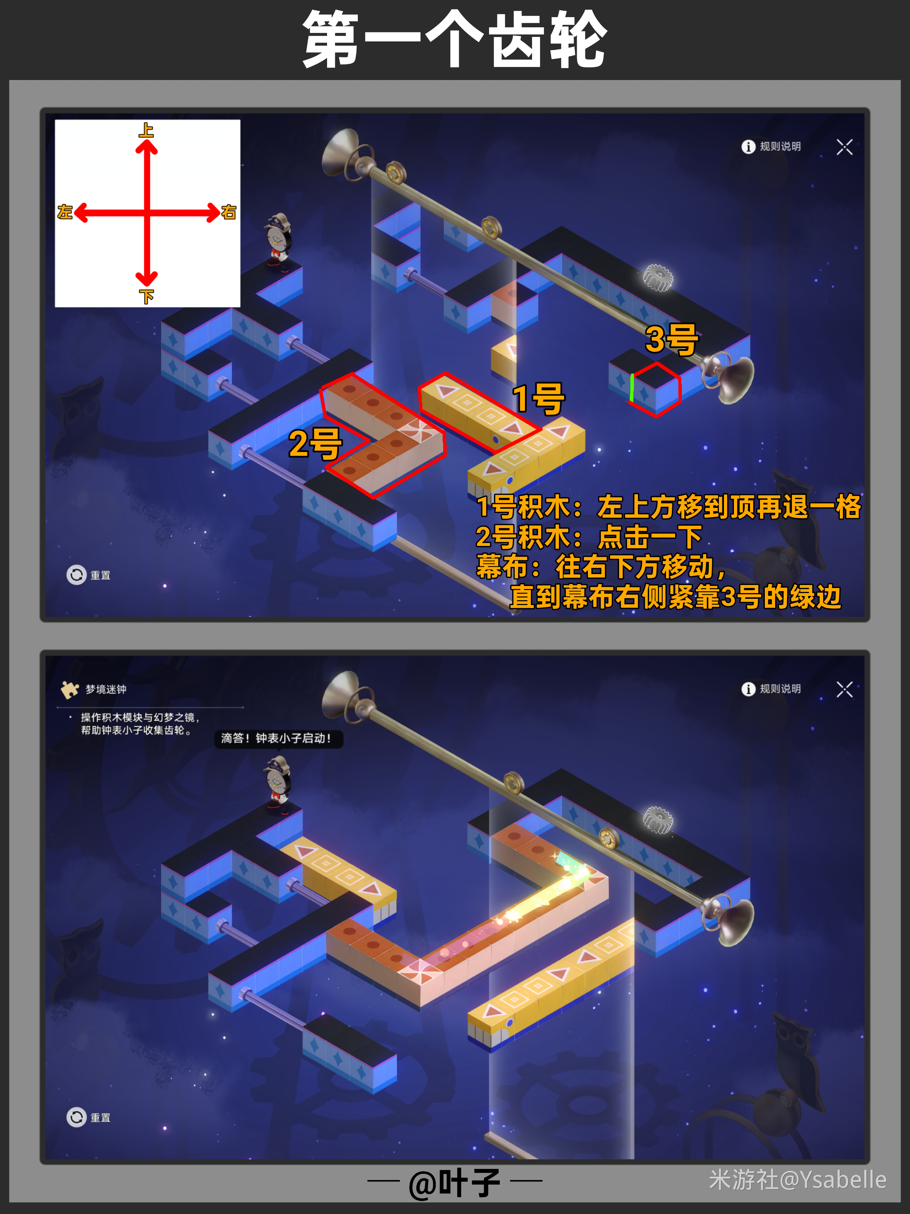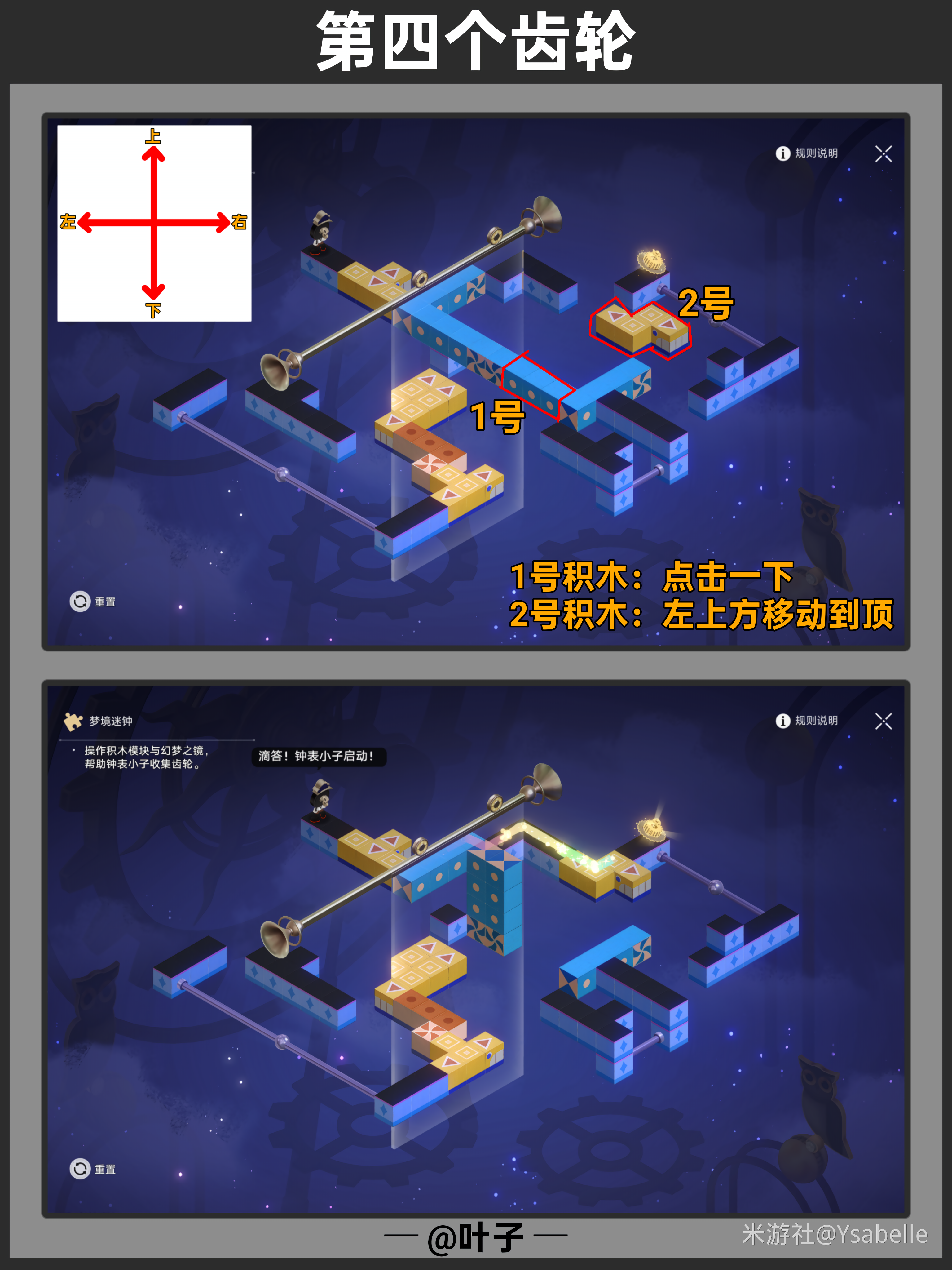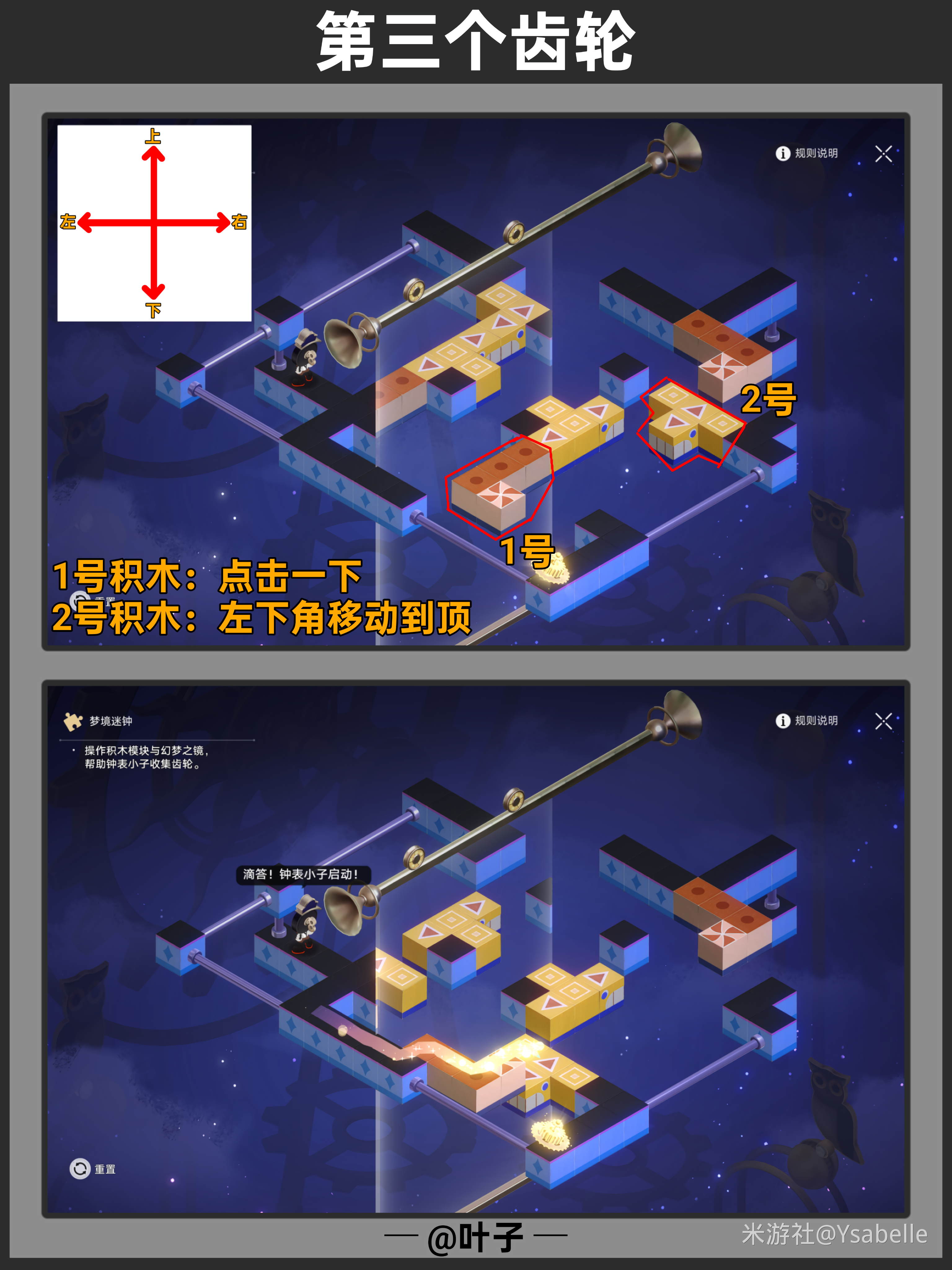 点击三次「旋转模块」,使模块指向右上角,然后停止操作,沿路前进回收【筑梦之眼】