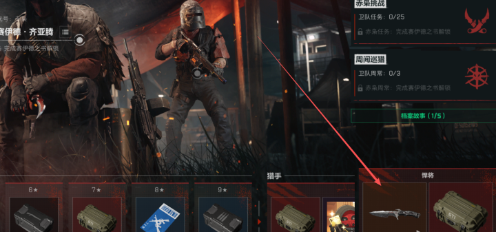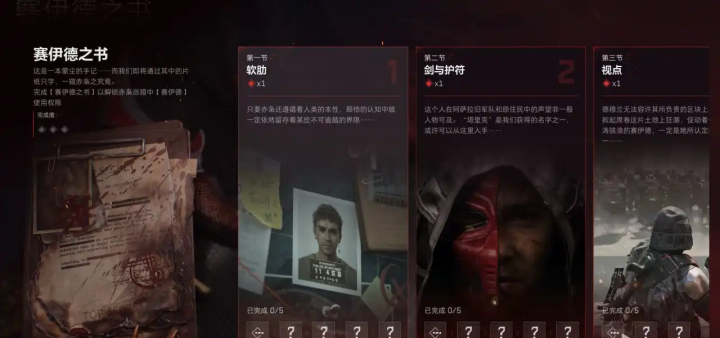 1、通过烽火地带来解锁三角洲处刑者刀皮的流程,相对来说稍微复杂一些,需要我们先在《赛伊德之书》中四选三完成对应章节任务;