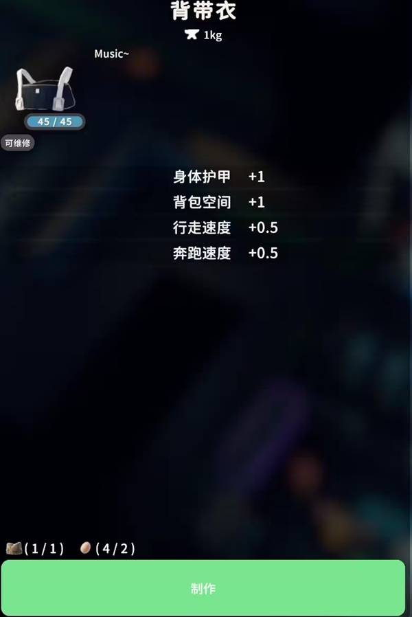 使用材料制作背带衣(所需材料:1个一级防弹衣 + 2个鸡蛋),并穿戴好装备。
