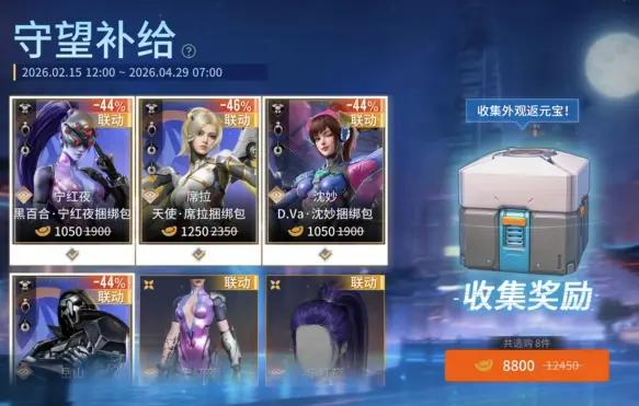 2月15日~4月29日,【守望补给】活动限时开启!收集联动外观即可返还元宝!