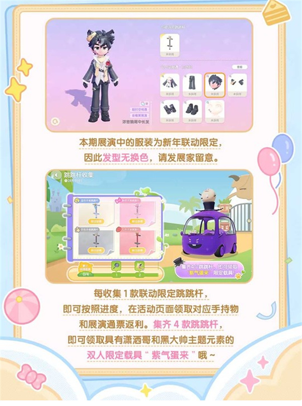 奖励方面同样诚意十足。只要集齐指定数量的限定载具,即可解锁联动专属手持物“平底锅玩具”、额外展演通票,以及双人限定载具“紫气蛋来”。整体设计以童趣和真实还原感为主,让玩家在日常经营与探索过程中,也能切身感受到来自青青草原的欢乐氛围。