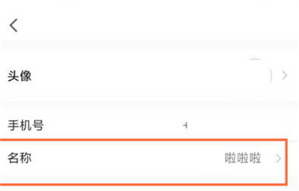 进入个人资料页面后,找到并点击“名称”选项,以便查看或修改自己的显示名称,如图所示。