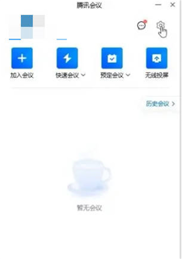 打开腾讯会议软件后,点击界面右上角的“设置”功能,进入相关操作页面;