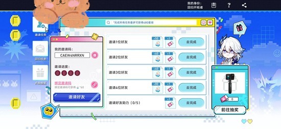 活跃的开拓者能够分享自己的专属邀请码,邀请符合条件的开拓者回归游戏,从而获得星琼奖励和抽奖机会。