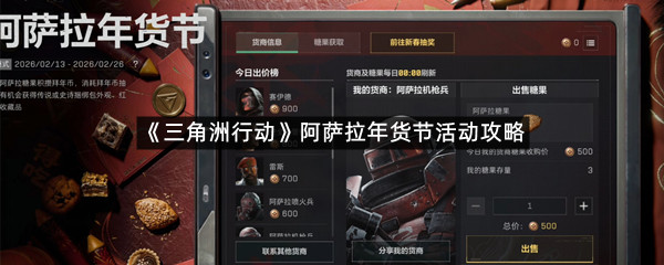 《三角洲行动》马年新春活动已经正式开启,此次的马年活动为我们玩家准备了很多丰厚的可以领取枪皮限定大红的奖励,其中一个可以白嫖获得枪皮和大红的活动就是阿萨拉年货节活动,但是一定要注意这个活动只能领取两次,所以千万不能乱领,于是这里羊托游小编为你带来了《三角洲行动》阿萨拉年货节活动攻略的全部内容,感兴趣的小伙伴欢迎点击进入看看吧。