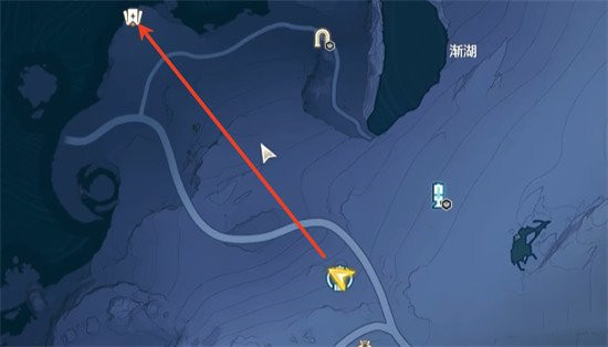 2、到达后,沿地图左上方方向前进,抵达指定目标地点。
