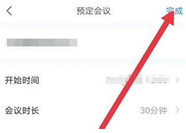 在常规会议设置页面,需要填写或调整相关数值,例如会议开始时间、会议时长等,然后点击右上角的“完成”按钮保存设置。