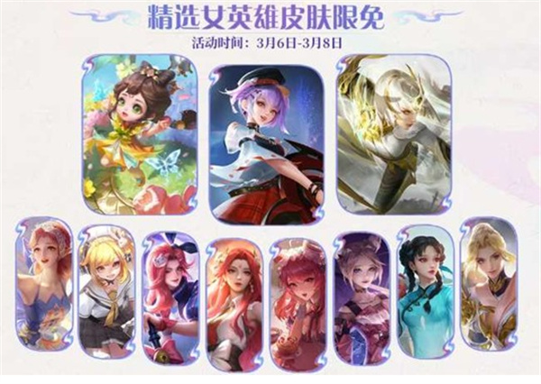 全体女性英雄限时免费,玩家可自由练习或体验自己的本命英雄。