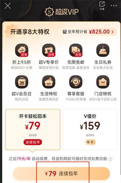 第二步,点击连续包年
