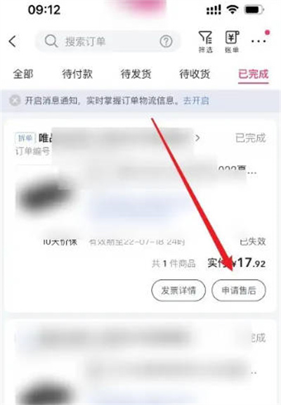 在“已完成”页面中,找到你想申请退货的商品,点击右下角的“申请售后”,然后选择“退货”即可完成操作。