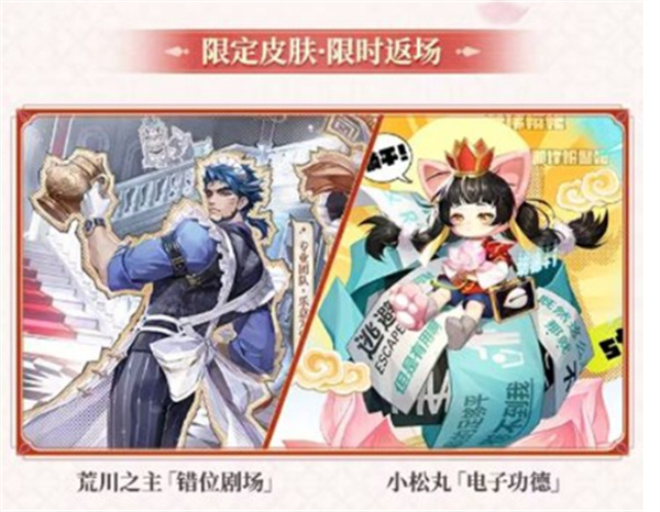 S33赛季期间,荒川之主「错位剧场」与小松丸「电子功德」两款经典限定皮肤将进行限时返场,错过的玩家可抓住机会再次入手。