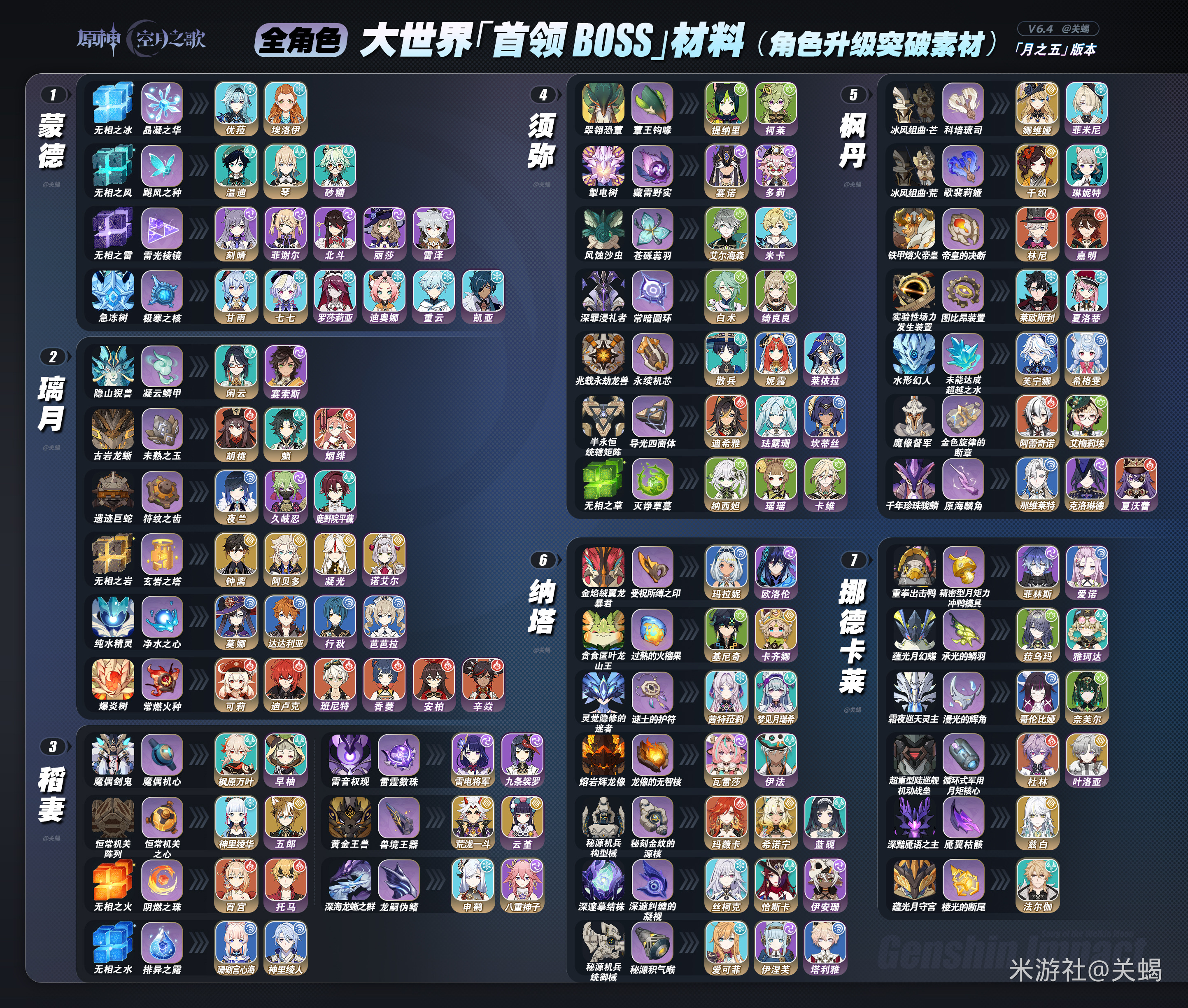 包含截至当前版本,全角色升级与突破所需在大世界内击败首领BOSS获取的核心材料汇总。